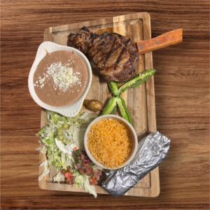 $25.99Ribeye steak platter with bandera salad, rice, beans, cambray onion, chile toreado & ...