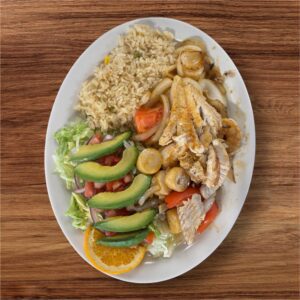 $25.99Grilled scallops, shrimp and fish with grilled onions and tomatoes. Served with white rice ...
