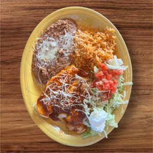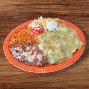 $18.99Three enchiladas with choice of ground beef, shredded beef or shredded chicken topped with ...