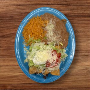$17.99Four rolled fried corn tortillas stuffed with 2 shredded chicken and 2 shredded beef. ...