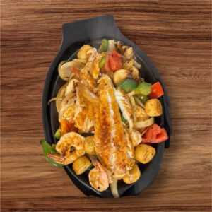 $24.99Shrimp, fish, scallops, onions, tomatoes, rice & beans, topped with cheese sauce....